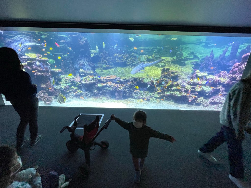 This part is more about science (diving, depths, space,..) , it’s a bit boring for my kids (3&5 year olds) but I believe for older kids it’s much more interesting. Other than that they have a shark tank and sea lions.